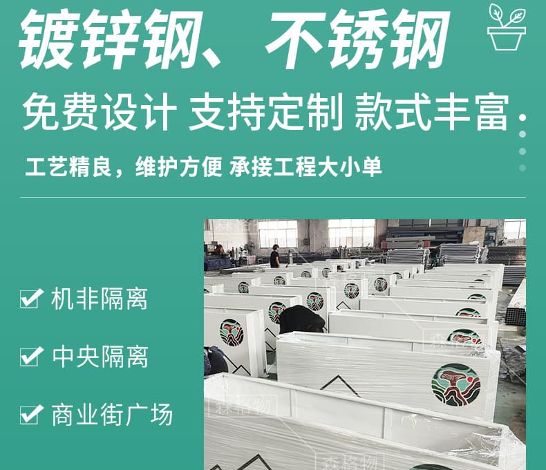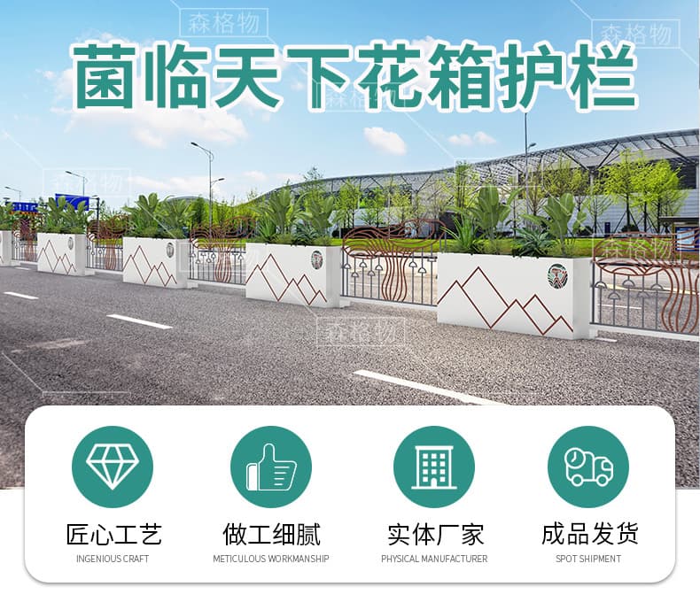 為什么選擇我們的花箱護(hù)欄? ? 定制化服務(wù):支持尺寸、顏色、材質(zhì)定制,滿足不同城市景觀需求 ? 高品質(zhì)保障:嚴(yán)格選材,精湛工藝,確保產(chǎn)品經(jīng)久耐用 ? 專業(yè)團(tuán)隊(duì):提供從設(shè)計(jì)、生產(chǎn)到安裝的一站式服務(wù) ? 環(huán)保節(jié)能:符合現(xiàn)代城市綠色發(fā)展的理念