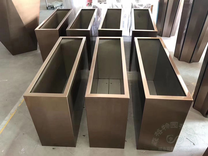 不銹鋼花箱的顏色是比較單一,一般都是焊接拋光,不銹鋼無(wú)論厚度、硬度方面都要比鋁合金的高,比較耐用,外表面可以通過(guò)噴漆,電鍍等工藝上色,而鋁合金花箱不可以用焊來(lái)去接的,而是直接連接桿而成的,鋁合金花箱不易生銹,重量是沒(méi)有不銹鋼那么重,比較輕便,在道路花箱中多以仿木紋外觀為主。