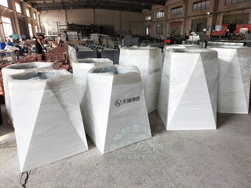 光澤與金屬質(zhì)感:不銹鋼花箱的光澤表面和金屬質(zhì)感賦予其獨(dú)特的視覺(jué)效果,反射光線,使花箱更加引人注目。