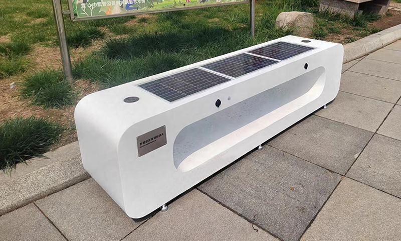 智能充電座椅一般長度2米,寬0.5米,高0.5米,可同時(shí)供3到4人休息。座椅上面裝有3塊太陽能光伏板和無線充電板,可將光伏清潔能源轉(zhuǎn)化為電能,并通過智能控制系統(tǒng)向內(nèi)置電池儲存電能。太陽能智能座椅左右兩端均設(shè)置無線充電區(qū)域,市民只需將有無線充電功能的手機(jī)放在無線充電板上,就能實(shí)現(xiàn)無線充電。如果手機(jī)沒有無線充電功能,可以利用座椅上的USB接口進(jìn)行充電。