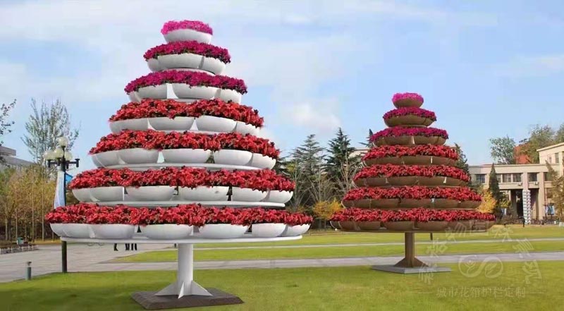 戶外立體花架一般在節(jié)慶日用的比較廣泛,給人一種花團錦簇的視覺沖擊,突出節(jié)日的喜慶氛圍?;苷w是由花架和花盆組合而成,可組裝拆卸,極大的降低了產(chǎn)品的運輸成本。