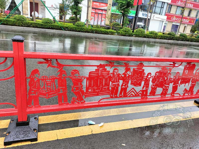 十里紅妝的熱鬧場(chǎng)面已成為歷史,承傳了千百年的婦女境況已徹底改變,但曾經(jīng)讓古代婦女哭過(guò)、恨過(guò)、愛(ài)過(guò)和榮耀過(guò)的一切生活方式和生活空間,通過(guò)城市護(hù)欄藝術(shù)展現(xiàn)。