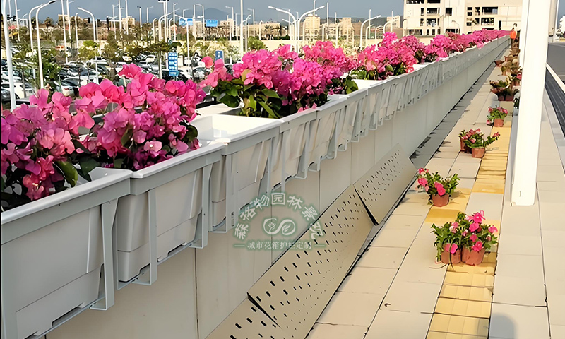 按結構形式分類:包括掛式花箱、組合式花箱、裝配式花箱等。掛式花箱通常通過掛鉤或支架固定在橋梁護欄或邊緣上,節(jié)省空間且安裝方便;組合式花箱由多個花箱單元組合而成,可以根據(jù)需要進行不同的排列和組合,形成各種造型和圖案;裝配式花箱則是采用模塊化設計,現(xiàn)場組裝,具有安裝快捷、便于維護等優(yōu)點。